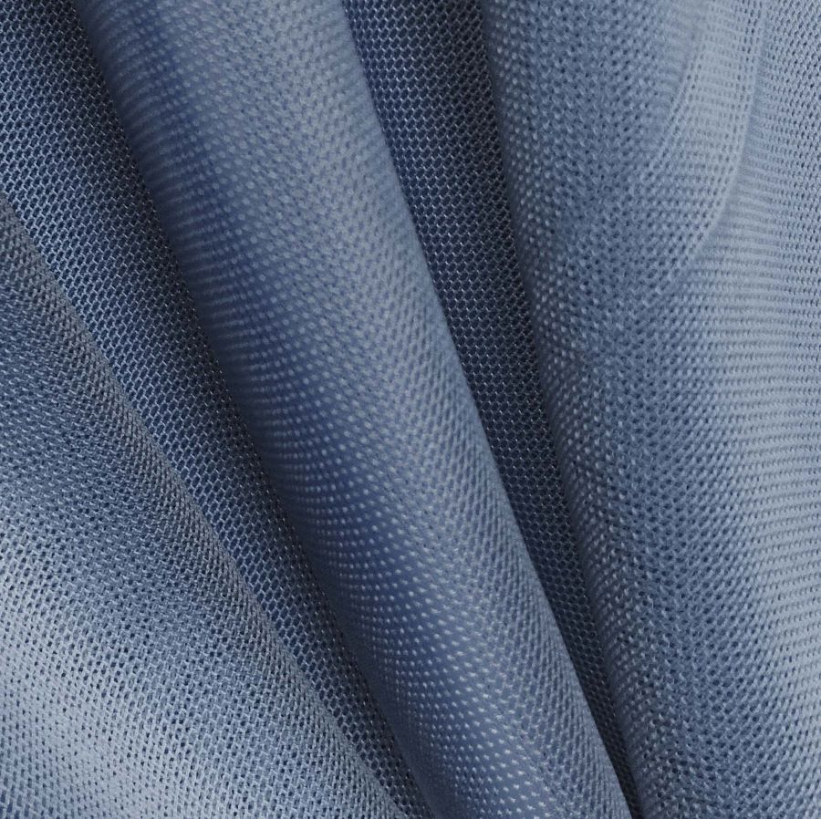 La tela base es el Tul Elástico - Oslo, compuesta por un 94% de poliéster y un 6% de elastano, con un gramaje de 80 gr/m2 y un ancho de 147 cm. El color liso impreso en esta tela es Azul-Gris Azul Oscuro, con un CMYK de 78 60 36 23. Este color se describe como profundo, sofisticado y elegante, evocando sensaciones de calma y serenidad. Combina muy bien con colores neutros, como el blanco y el gris, así como con tonos pastel, como el rosa y el lila.
