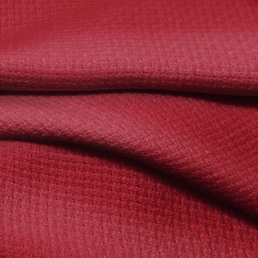 La tela base es un Tweed Chanel 100% poliéster con un gramaje de 420 gr/m2 y un ancho de 150 cm. El color liso impreso es un rojo auburn, que se obtiene mediante la combinación de las tintas cian (27), magenta (98), amarilla (75) y negra (29), con un CMYK de 27 98 75 29. Este tono profundo y elegante transmite fuerza y vitalidad, a la vez que proporciona un toque de sofisticación y distinción a las prendas o piezas textiles en las que se utilice. Por sus características, el color auburn va muy bien con tonos oscuros como el negro, grises y azules marinos, así como con dorados y plateados.