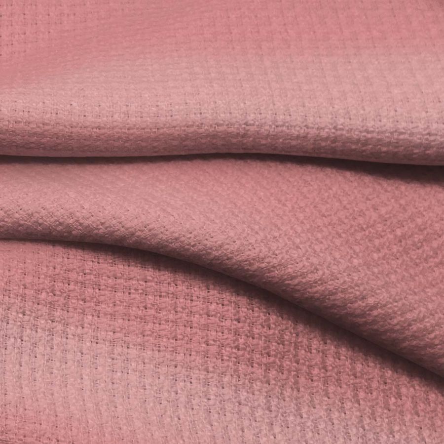 La Tweed - Chanel es una tela base de tweed con una composición de 100% poliéster y un gramaje de 420gr/m2. El color liso impreso en ella es un rojo coral rosa con un CMYK de 11 55 36 2. Este color secundario es un tono alegre y enérgico, que combina armoniosamente con otros tonos pastel y colores asociados con la naturaleza, como beige, marrón o verde musgo. Es importante destacar que la tela está impresa con el color liso a una sola cara por impresión digital textil, lo que significa que no se trata de un tejido tintado sino impreso por una sola cara.