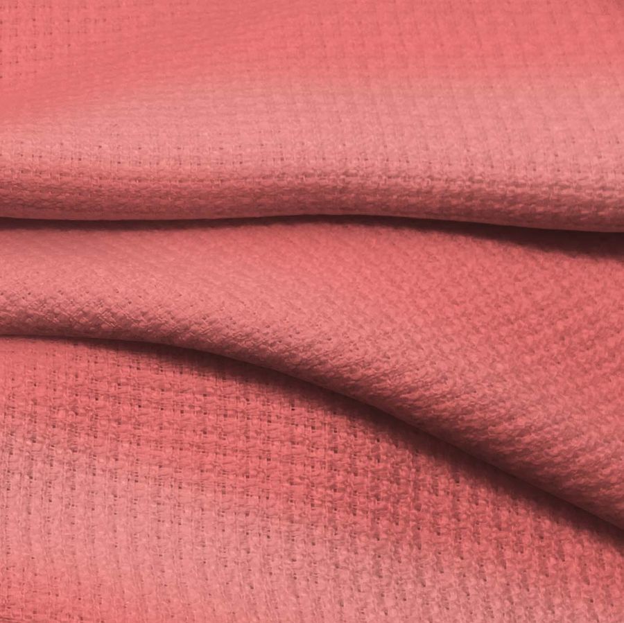 La tela base de este tejido es el Tweed - Chanel, 100% POLIÉSTER, con un gramaje de 420 gr/m2 y un ancho de 150 cm. El color liso impreso es un Rojo-Pastel de Ciruela, con un CMYK de 0 66 45 0. Simbólicamente, este color representa la pasión, la creatividad y la fuerza interior. Técnicamente, se trata de un color de tonalidad cálida que combina el rojo y el morado, ideal para combinar con tonos claros como el beige, el blanco o el crema.