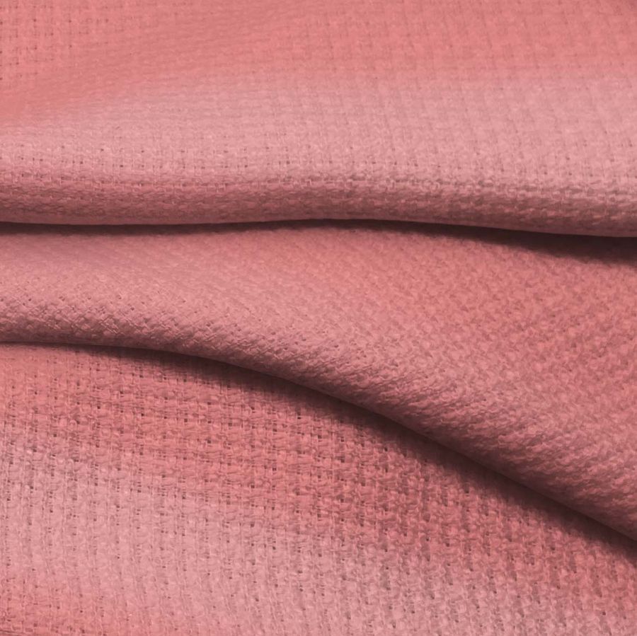 La tela base de este tejido es un Tweed - Chanel de 100% poliéster con un gramaje de 420 gr/m2 y un ancho de 150 cm. El color liso impreso es Rojo-Grisaceo, cuyo CMYK es 2 59 38 0. El color secundario es una mezcla de rojo y gris, lo que le otorga una apariencia sofisticada y elegante. El color rojo representa la pasión y vitalidad, mientras que el gris expresa la elegancia y sobriedad. Este color combina perfectamente con tonos blancos, negros y grises, creando un equilibrio de colores. La tela está impresa a una sola cara por impresión digital textil, lo que significa que su patrón o diseño solo se encuentra en una cara de la tela.