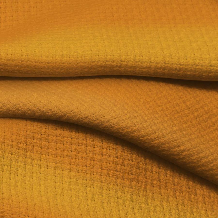 La tela base Tweed - Chanel ofrece un gramaje de 420 gr/m2 y una composición de 100% poliéster, con un ancho de 150 cm. Su color liso impreso en naranja zanahoria se logra con la combinación de tinta Cyan: 13, Magenta: 57, Yellow: 94 y Black: 2 en un perfil de color CMYK de 13 57 94 2. Este color transmite calidez, vitalidad y energía, evocando el fuego y la luz del sol, capaz de aportar alegría y vitalidad a cualquier diseño. Complementa perfectamente con tonos oscuros como el negro y marrón, y también con azules y verdes.