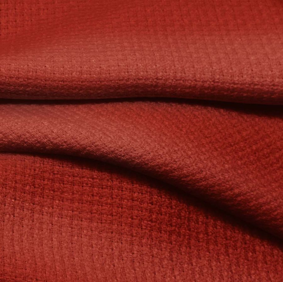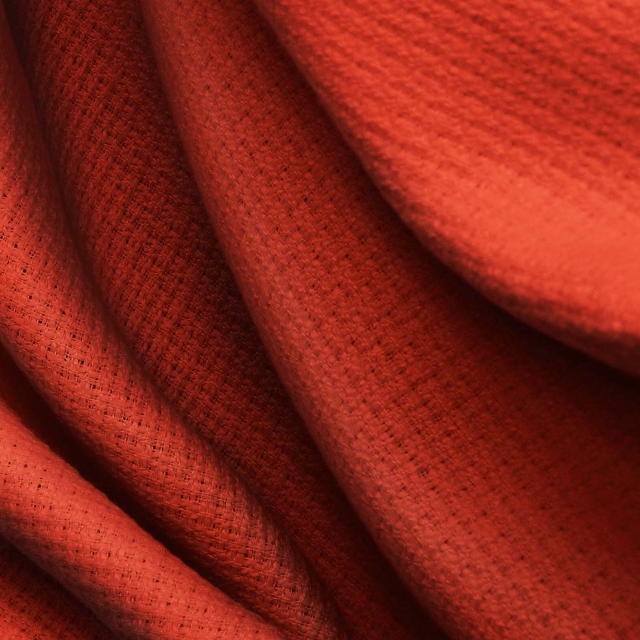 La tela base es un tejido tweed chanel de 100% poliéster con un gramaje de 420 gr/m2 y un ancho de 150 cm. El color liso impreso es un naranja ladrillo refractario que se genera con una mezcla de tintas cian, magenta, amarillo y negro en formato CMYK: 28 99 100 34. Este color se caracteriza por ser vibrante y cálido, evocando la tonalidad de las hojas caídas en otoño o el tono de la piel bronceada por el sol. Combina muy bien con otros tonos naturales como el marrón o el beige, así como con los colores fríos como el azul o el verde para generar contrastes más impactantes.