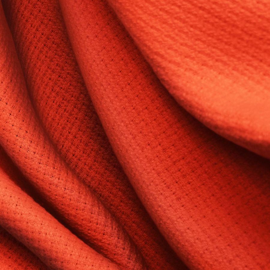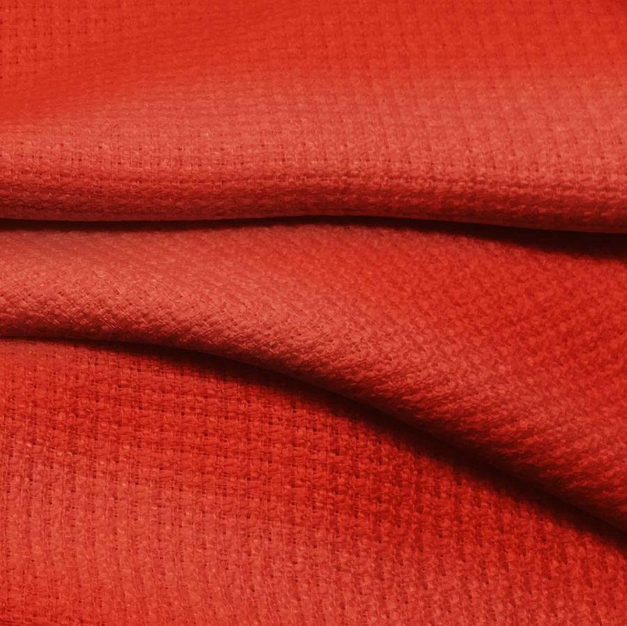 La tela base de este tejido es un tweed de poliéster con un gramaje de 420 gr/m2, ancho de 150 cm y una composición del 100% de dicho material. Está impresa con un color naranja-lava vibrante que combina un bajo nivel de tinta cian (13), un alto nivel de tinta magenta (94), un alto nivel de tinta amarilla (100) y un bajo nivel de tinta negra (3); haciendo un total de un CMYK de 13 94 100 3. Este color secundario es muy versátil y simboliza la energía, el entusiasmo y la creatividad. Combina muy bien con otros colores que reflejan la naturaleza, como los tonos verdes, y con colores neutros como el blanco y el negro.