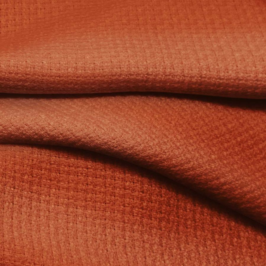 La tela base es el Tweed - Chanel, de composición 100% POLIÉSTER y un gramaje de 420 gr/m2. El color liso impreso es Naranja, con una combinación de tinta Cyan: 25, Magenta: 81, Yellow: 96 y Black: 19 en un perfil de CMYK de 25 81 96 19. Este color evoca vitalidad, energía y optimismo, siendo símbolo de creatividad y alegría. Combina bien con tonos neutros como el blanco, gris y negro, pero también con verdes y marrones.