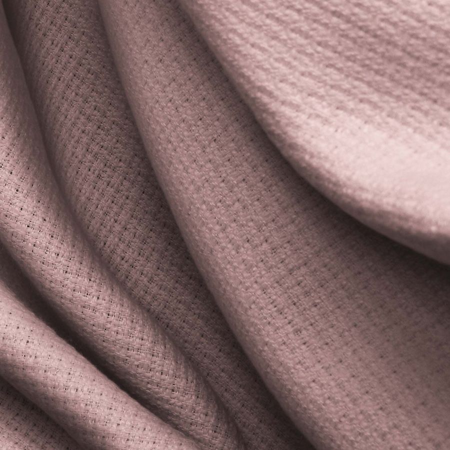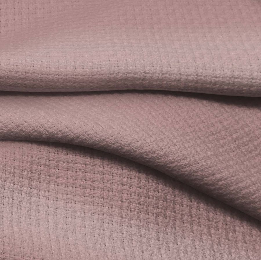 La tela base es Tweed - Chanel, un tejido de composición 100% poliéster con un gramaje de 420 gr/m2 y un ancho de 150 cm. El color liso impreso es rosa mate, con un CMYK de 26, 44, 35, 11. Este color simboliza la alegría, el romanticismo y la dulzura, y técnicamente es un color secundario derivado de la mezcla de rojo y blanco. Combina especialmente bien con tonos grises, beige y blancos, que acentúan su dulzura y feminidad.