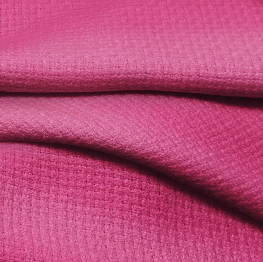 La tela base Tweed - Chanel, con una composición 100% poliéster, tiene un gramaje de 420 gr/m2 y un ancho de 150 cm. Su color liso impreso es el Rosa Bouganvilla, con una combinación de tintas Cyan: 15, Magenta: 84, Yellow: 27 y Black: 3, representado por el código CMYK 15 84 27 3. Este color secundario simboliza pasión, energía y creatividad, y se combina perfectamente con tonos neutros como el gris o el beige, y con tonos más cálidos como el amarillo o el naranja.
