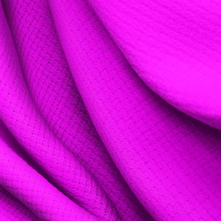 La tela base es un tweed de chanel compuesto por un 100% de poliéster con un gramaje de 420 gr/m2 y un ancho de 150 cm. El color liso impreso es un rosa magenta con un CMYK de 41 78 0 0. Este color transmite energía, creatividad y pasión. Es un color que combina muy bien con tonos neutros como el blanco, el negro y el gris.