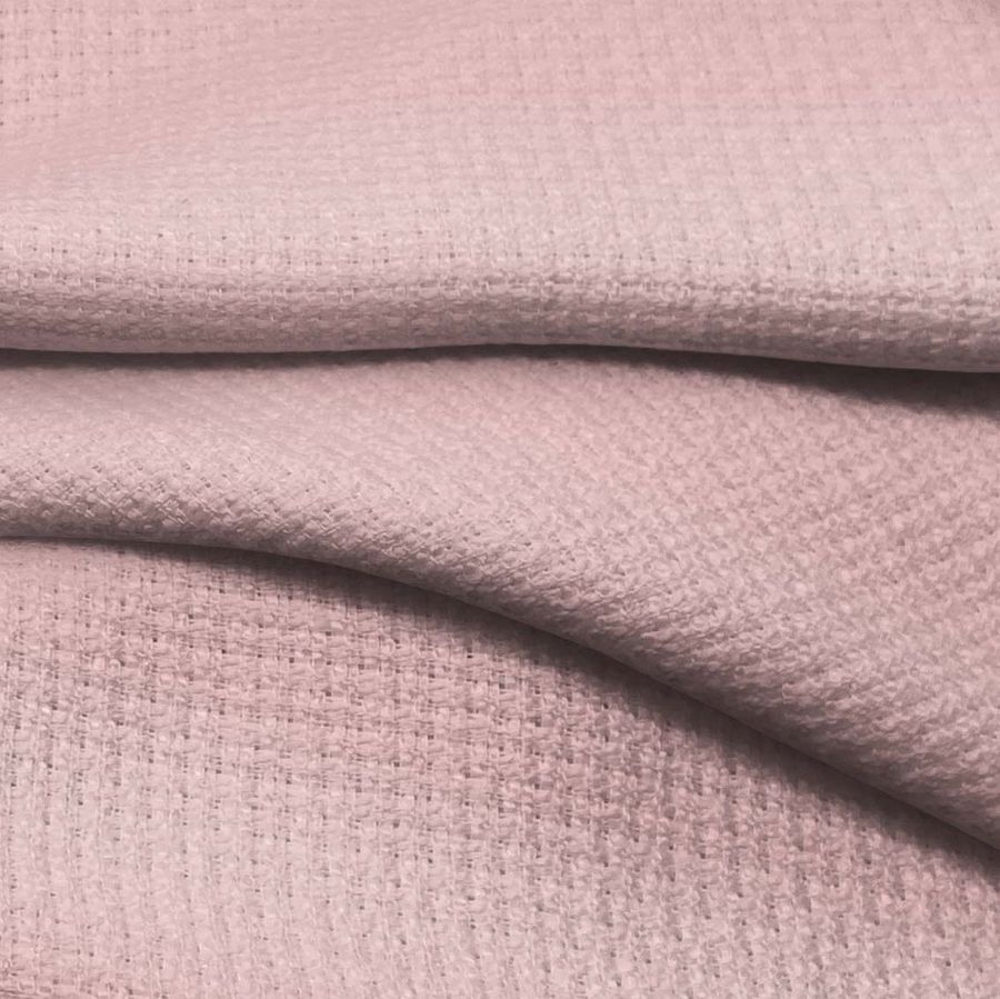 El Tweed - Chanel es un tejido de tipo tweed, compuesto por 100% poliéster de 420 gr/m2 y una anchura de 150 cm. El color liso impreso es un Rosa bebé con un CMYK de 2 31 18 0, que ofrece una sensación de dulzura y sutileza. Este color secundario combina perfectamente con tonalidades claras como el beige, blanco o gris claro.