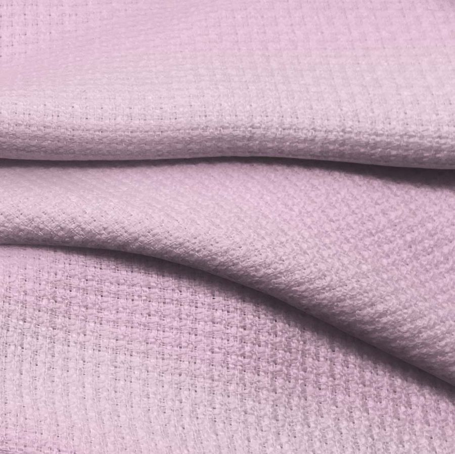 La tela base del Tweed - Chanel es un tejido de 100% poliéster, con un gramaje de 420 gr/m2 y un ancho de 150 cm. El color liso impreso es Rosa Classic, con una combinación de tinta magenta en un 28% de su pigmentación. Este color es vibrante y cálido, que puede ser combinado con otros tonos pastel como el beige y el amarillo, así como también con tonos más oscuros como el azul marino y el negro.