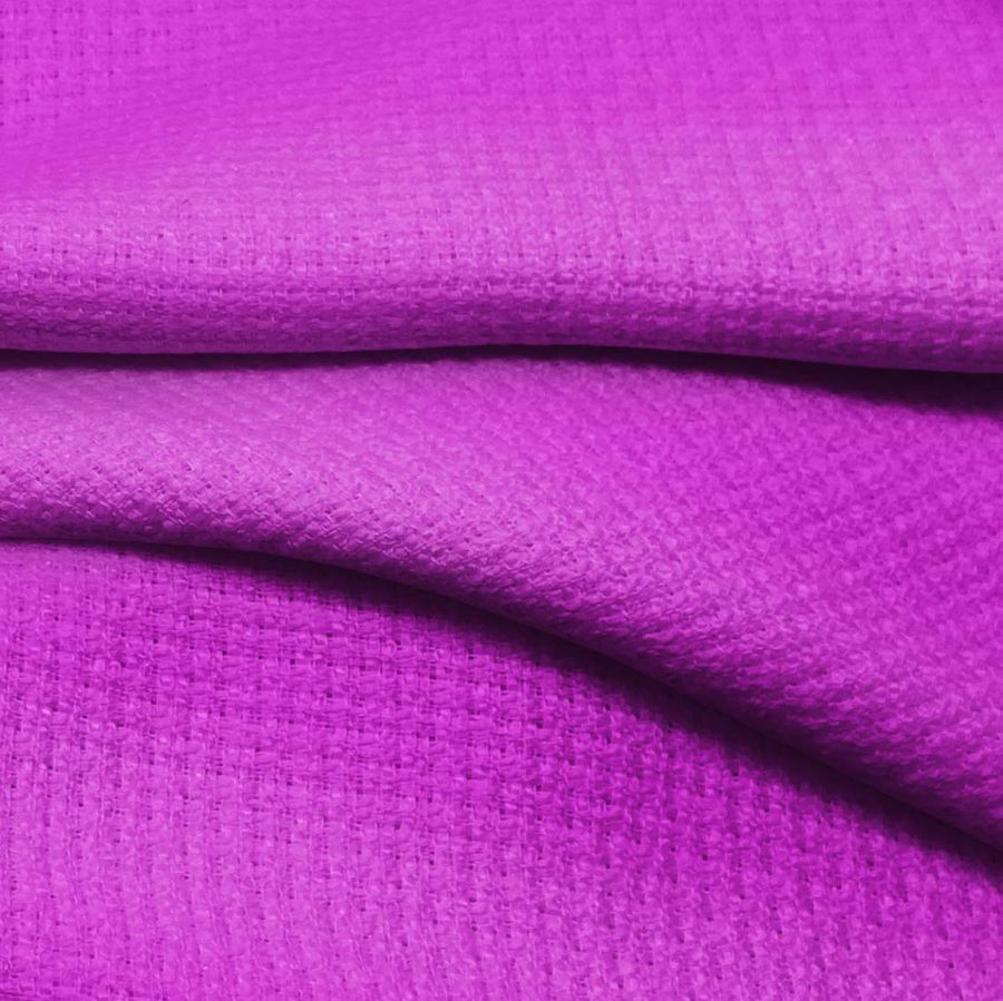 La tela base es el Tweed-Chanel, compuesta al 100% por poliéster, con un gramaje de 420 gr/m2 y un ancho de 150 cm. Su cuidado exige no blanquear, lavar a temperatura máxima 30 °C, admitir limpieza en seco (excepto con tricloroetileno), y planchar a temperatura baja, sin ser secado en secadora. Aplicaciones de la tela son múltiples, adecuada por su grosor y estilo para chaquetas, blazers, abrigos/trench, faldas, vestidos, cazadoras/chalecos, almohadones y cojines en salón, dormitorio y cocina, así como para shorts y pajaritas, gorras y chalecos deportivos. Es una tela adecuada para la época otoño/invierno aunque también puede ser adaptada a otras temporadas. El color liso impreso en esta tela es rosa de acero, con una mezcla de tinta de 47 en cyan y 80 en magenta, y sin mezclas con tintas amarillas ni negras, representado por el código CMYK de 47 80 0 0. El color rosa acero evoca la sensualidad del rosa más dulce y el poder del acero, siendo un color elegante pero vibrante a su vez. Es un color que combina perfectamente con neutros como el gris, el marrón o el beige, así como con verdes oscuros, azules marinos y negros. La tela está impresa con el color liso a una sola cara por impresión digital textil, lo que es importante destacar ya que no se trata de un tejido tintado sino impreso en una sola cara. Sus características generales incluyen una textura rígida al tacto, por lo que esta tela es ideal para prendas que requieran cuerpo y estructura. La tecnología de impresión utilizada es la sublimación de poliéster, gracias a la cual se consigue que el color impreso en la tela sea duradero y de alta calidad, con bordes nítidos y sin desteñidos. En cuanto al cuidado de la tela, se deben seguir las recomendaciones dadas anteriormente para garantizar la longevidad de la prenda, evitando siempre blanquear y secar en secadora. En resumen, el Tweed-Chanel con su color rosa acero impreso en calidad sublimación es una excelente elección para prendas que busquen sobriedad y elegancia, dotándolas de una personalidad vibrante y glamorosa.