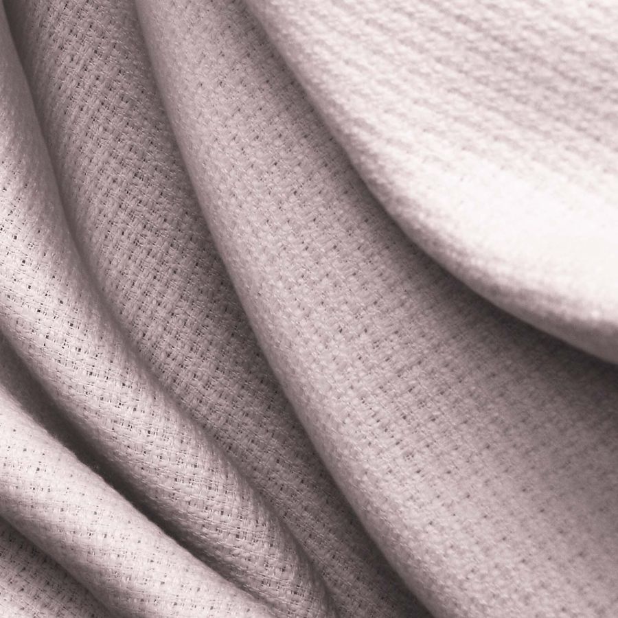 La tela base de esta pieza es el Tweed-Chanel, un tejido de tipo tweed compuesto al 100% de poliéster, con un gramaje de 420 gr/m2 y un ancho de 150 cm. El color liso impreso en esta tela es un rosa pálido, con un CMYK de 1 20 9 0. Este color secundario se caracteriza por su suavidad y delicadeza, lo que lo convierte en una opción popular para prendas femeninas y artículos de decoración. Además, este color combina perfectamente con tonalidades como el beige, el blanco, el gris claro y el dorado pálido.