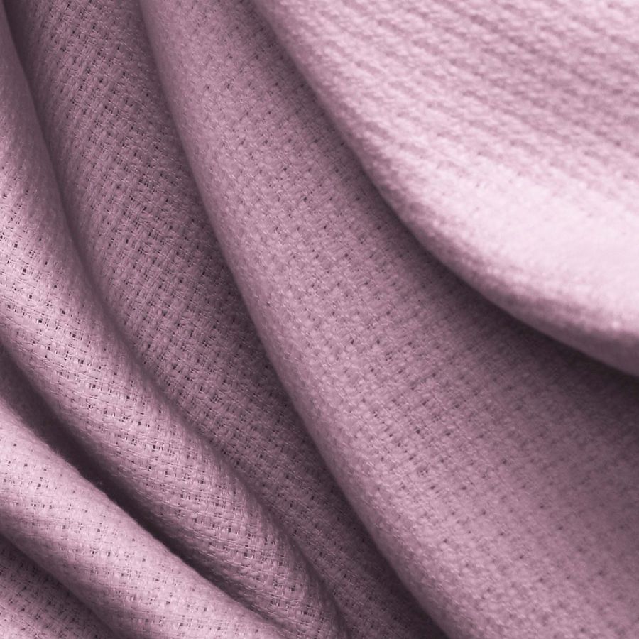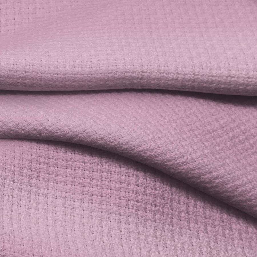 La tela base Tweed-Chanel, compuesta 100% por poliéster, posee un gramaje de 420 gr/m2 y un ancho de 150 cm. El color liso impreso en este tejido se compone de un rosa profundo con una combinación de tintas de 16 de cian, 43 de magenta, 12 de amarillo y 0 de negro en CMYK. Este color simboliza la pasión, el romance y la elegancia, y se combina perfectamente con tonos grises y blancos para crear contrastes y realzar la sensación de dulzura.