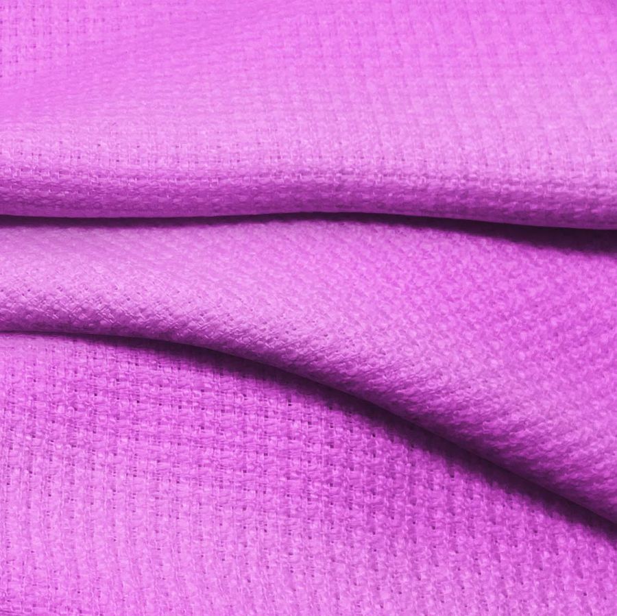 La tela base de este tejido es el Tweed - Chanel, un tipo de tela de tweed cuya composición es 100% poliéster. Su gramaje es de 420 gr/m2 y su ancho es de 150 cm. El color liso impreso en este tejido es el Rosa Shocking Crayola, que se consigue gracias a la combinación de 27% de tinta cian y 60% de tinta magenta. Este color tiene una tonalidad vibrante y eléctrica que evoca creatividad y vitalidad. Además, combina perfectamente con tonos neutros como el blanco o el negro.
