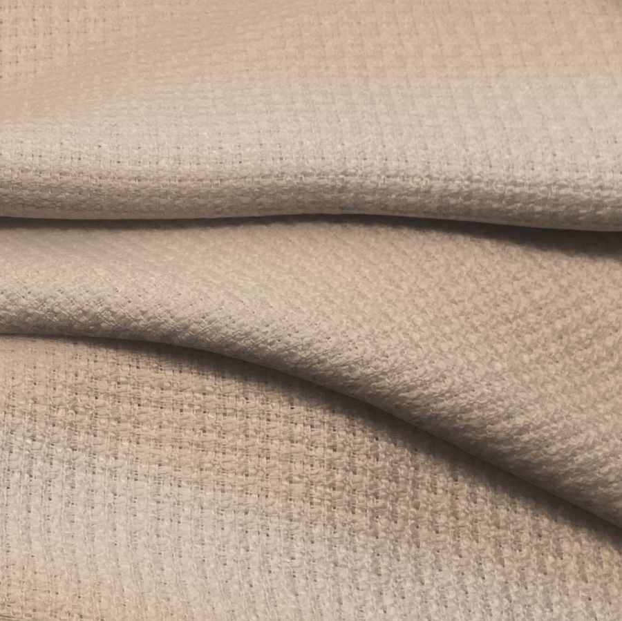 La tela base del Tweed - Chanel es un tejido de Tweed 100% poliéster con un gramaje de 420 gr/m2 y un ancho de 150 cm. El color liso impreso es marrón café con leche, con un contenido de 14 de tinta cian, 28 de tinta magenta, 37 de tinta amarilla y 3 de tinta negra en el modelo de impresión CMYK. Este color transmite una sensación de sobriedad y elegancia, y se combina especialmente bien con tonos beige, verdes y grises.