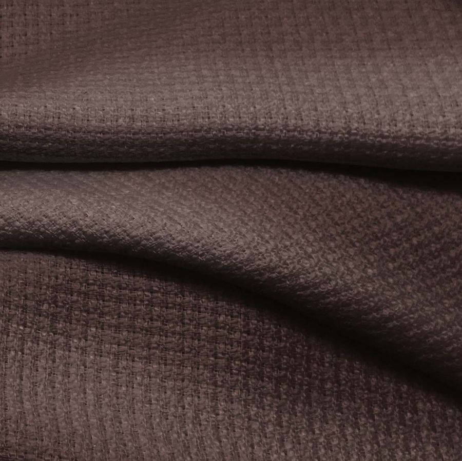 La tela base es el Tweed - Chanel, con una composición de 100%poliéster y un gramaje de 420 gr/m2. El color liso es Marrón Chocolate, con una combinación de tintas en el CMYK de 51, 63, 58, 68. Este color secundario transmite elegancia y sofisticación, y se combina a la perfección con tonos neutros como el beige y el gris. La tela está impresa con el color liso a una sola cara por impresión digital textil, lo que permite una excelente definición y nitidez en la imagen impresa.
