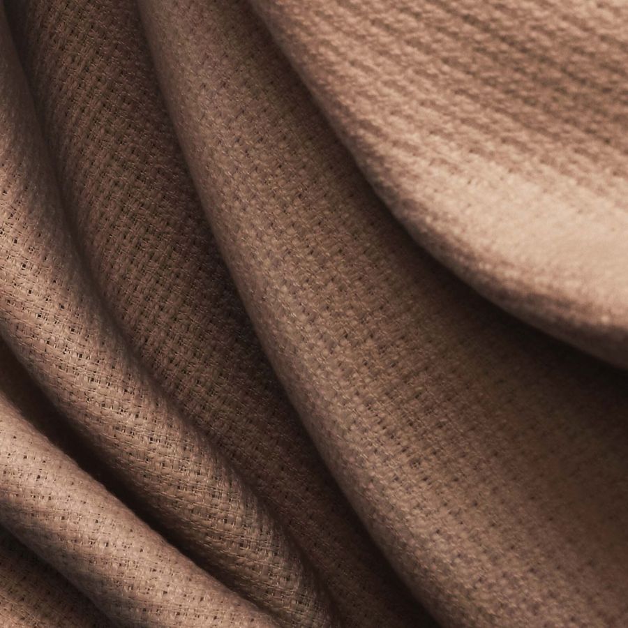 La tela base Tweed de Chanel en color liso Marrón Coco presenta un CMYK de 40 56 62 51. Este color evoca la naturaleza, la tierra y la sencillez. El marrón es un color cálido que combina bien con tonos naturales como beige, verde oliva, mostaza y también con tonos oscuros como burdeos y azul marino.