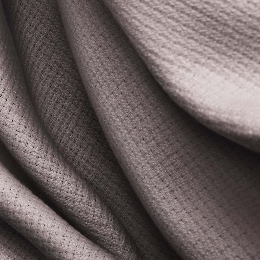 La tela base es un tweed de poliéster con un gramaje de 420 gr/m2 y un ancho de 150 cm. El color liso impreso es un gris ganso con un CMYK de 52 51 46 39, que otorga un carácter elegante y sofisticado a la tela. Este color se combina particularmente bien con colores neutros como el blanco y el negro, así como con tonalidades cálidas como el beige y el marrón.