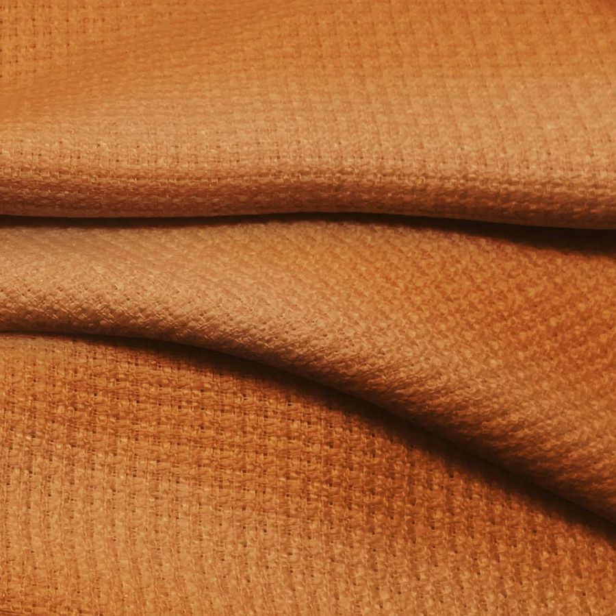 La tela base es un Tweed Chanel 100% Poliéster con un gramaje de 420 gr/m2 y una anchura de 150 cm. El color liso impreso es un Marrón Ruddy con un CMYK de 21 65 91 11. Este color simboliza la tierra, la naturaleza y la calidez, transmitiendo sensaciones de comodidad y tranquilidad. Además, el Marrón Ruddy es un color secundario que, al combinarse con tonos azules y verdes, crea una paleta de colores equilibrada y armoniosa. La tela está impresa con el color liso a una sola cara por impresión digital textil, lo que significa que el diseño se encuentra en una de las caras del tejido y no se encuentra tintado en su totalidad.