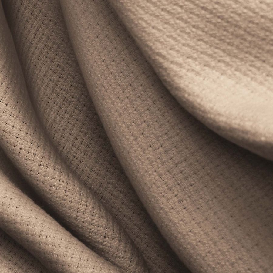 La tela base es Tweed - Chanel, de composición 100% poliéster, con un gramaje de 420 gr/m2 y un ancho de 150 cm. El color liso impreso es Marron, Veronés, con una tinta Cyan del 30, una tinta Magenta del 40, una tinta Yellow del 48 y una tinta Black del 19, siendo su CMYK 30 40 48 19. Este color simboliza la riqueza y la calidez, y técnicamente se trata de un tono marrón oscuro con un toque rojizo. Combina especialmente bien con tonos naranjas, tierras y algunos grises suaves.