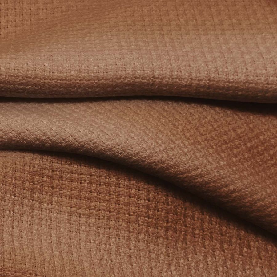La tela base es Tweed - Chanel, de composición 100% poliéster, con un gramaje de 420 gr/m2 y un ancho de 150 cm. El color liso impreso es un elegante Marrón Marta Cibelina, con un CMYK de 33 60 73 38. Este color se define por su tono terroso con matices rojizos y grises, evocando elegancia y sofisticación. También destaca su capacidad para transmitir serenidad y calidez. El color Marrón Marta Cibelina armoniza de manera idónea con tonalidades como el beige, el gris o el crema.