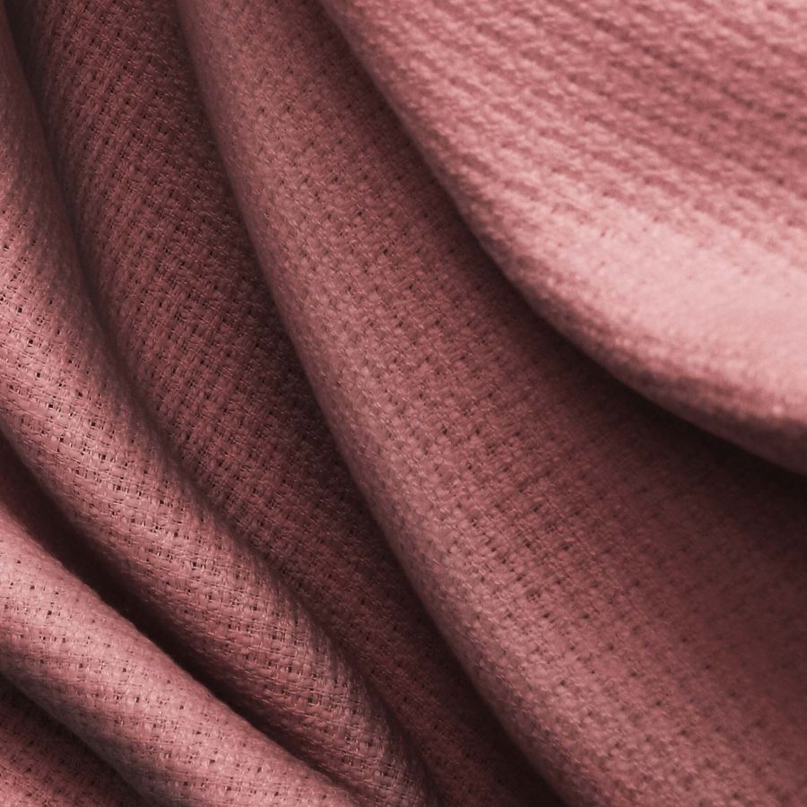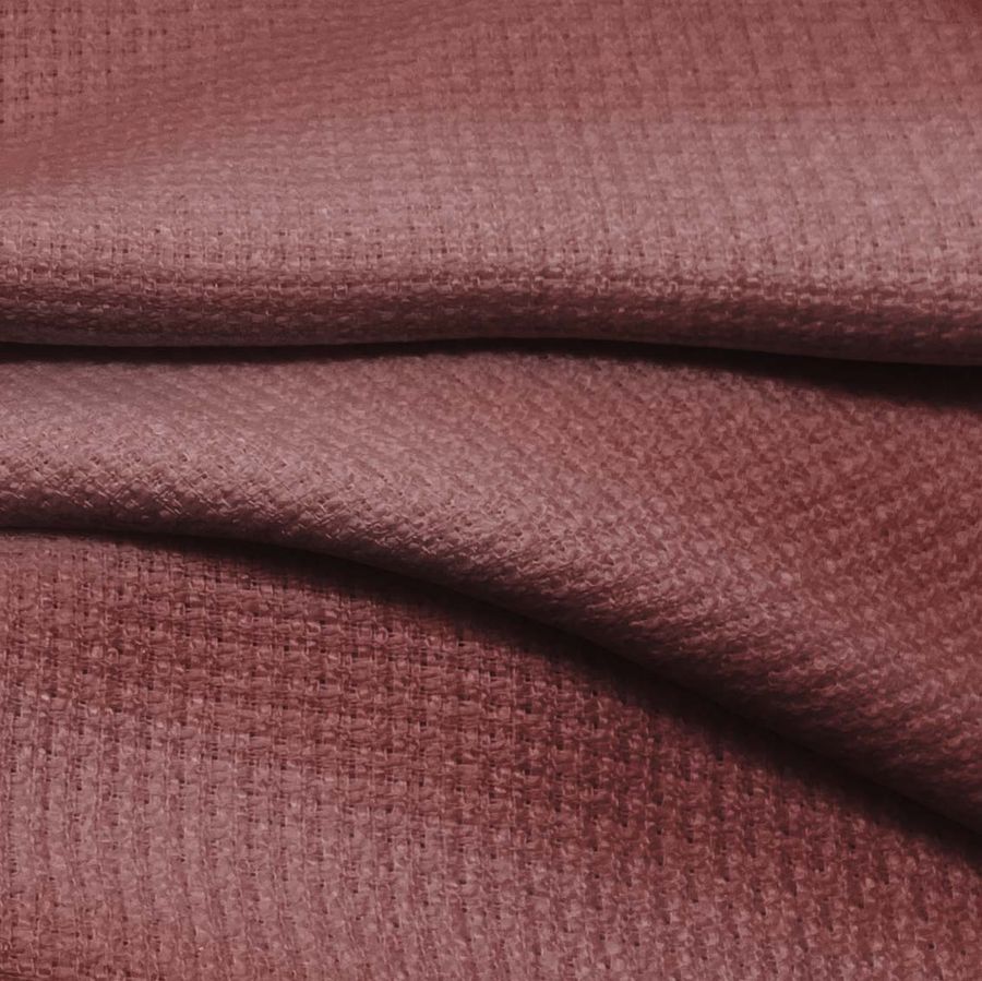 La tela base es un tweed de poliéster con un gramaje de 420 gr/m2 y ancho de 150 cm. El color liso impreso es marrón-rojo toscano, con un valor CMYK de 35 68 53 41. Este color transmite una sensación cálida y elegante, inspirada en los colores de la naturaleza. El color secundario destaca por su tonalidad rojiza, que combina perfectamente con tonos beiges, crema y blancos.