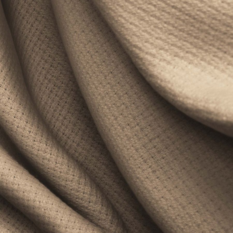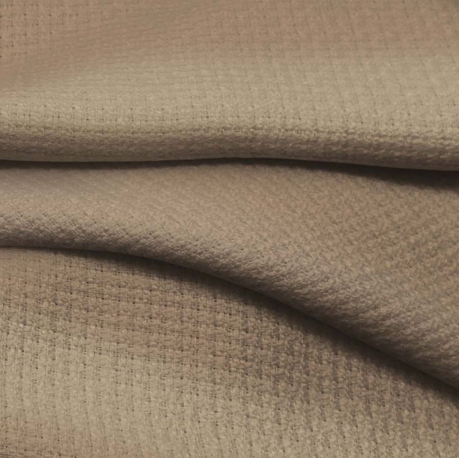 La tela base de este tejido es un Tweed - Chanel de composición 100% poliéster con un gramaje de 420 gr/m2. El color liso impreso en la tela base es Marrón Sándalo, caracterizado por un CMYK de 32 39 52 21. Este color simboliza la fuerza de la tierra y su estabilidad, a la vez que resulta elegante y sofisticado. Combina perfectamente con tonalidades claras como el beige y el blanco, así como con otras tonalidades terrosas como el verde oliva. Cabe destacar que este tejido está impreso con el color liso a una sola cara por impresión digital textil, lo que implica que no sea un tejido tintado sino impreso por una sola cara.