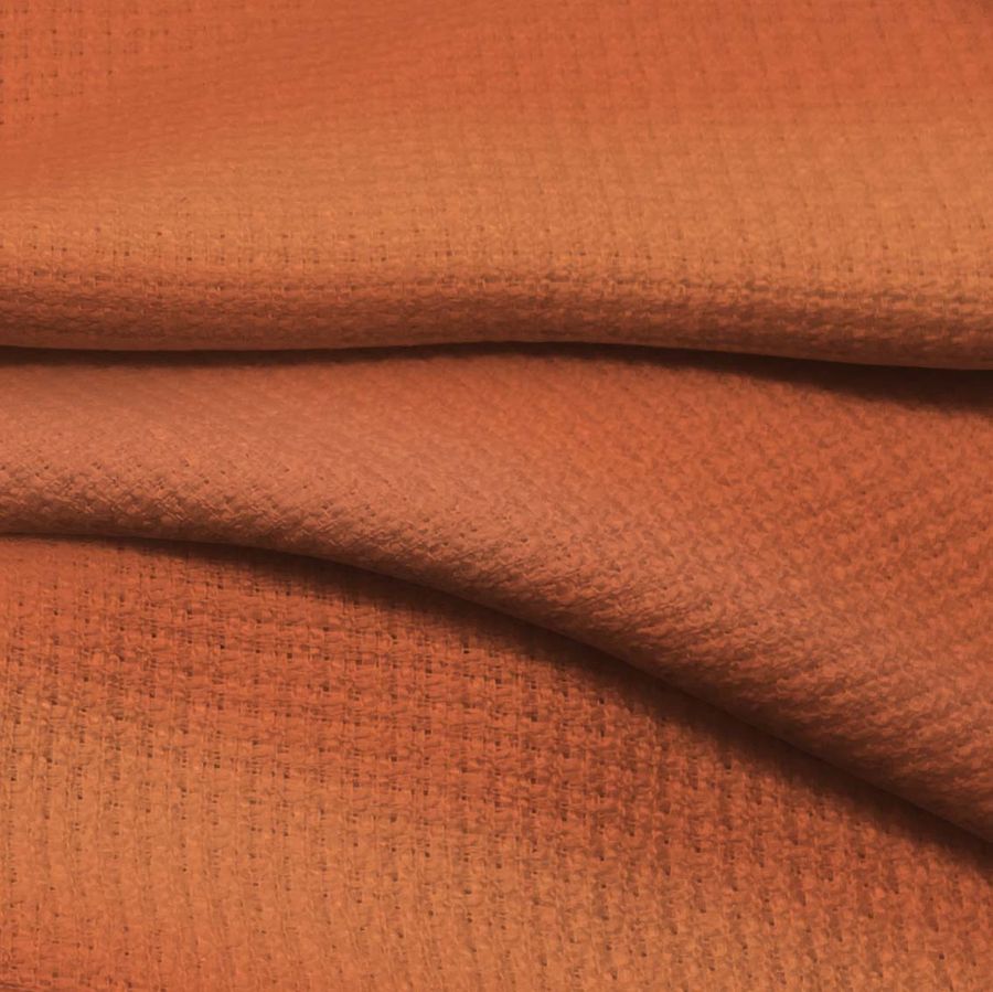 La tela base es el Tweed Chanel, una tela de tweed compuesta por 100% poliéster con un gramaje de 420 gr/m2 y un ancho de 150 cm. El color liso impreso es de tonalidad marrón siena tostada, con una composición de cian del 15%, magenta del 70%, amarillo del 80% y negro del 4%. Este color secundario presenta una mezcla de marrón y naranja, con una sensación de calidez y elegancia. Combina perfectamente con tonos claros como el beige y el blanco, o con tonos más oscuros como el verde oscuro y el marrón chocolate.