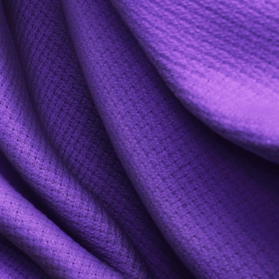 La Tweed - Chanel es una tela de tweed compuesta al 100% por poliéster con un gramaje de 420 gr/m2 y un ancho de 150 cm. Su color liso impreso es un vibrante tono morado-violeta azul, con una composición de tinta CMYK de 88 99 3 1. Este color complementa perfectamente con tonos plateados y grises, así como con tonos de rosa suave y verde oliva.