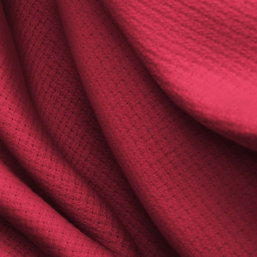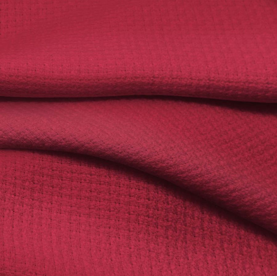 La tela base es el Tweed - Chanel, una tela de Tweed con una composición 100% POLIÉSTER y un gramaje de 420 gr/m2. El color liso impreso es Morado,Grana, con una tinta Cyan de 23, tinta Magenta de 93, tinta Yellow de 64 y tinta Black de 17, lo que corresponde a un CMYK de 23 93 64 17. Este color secundario es un tono profundo y cálido, que simboliza la pasión, la creatividad, la extravagancia y el misterio. Es una combinación de rojo y violeta, por lo que puede combinarse bien con ambos colores y también con tonos más claros como el rosa, el gris o el azul.