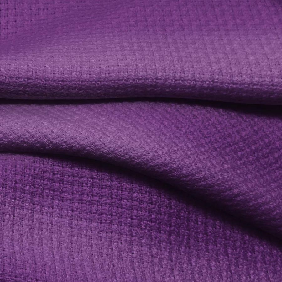 El Tweed - Chanel, compuesto al 100% por Poliéster, presenta un color liso impreso en tonalidad Morado Imperial, obtenido gracias a la combinación de las tintas Cyan, Magenta, Yellow y Black en un proceso de Sublimación. Este color representa la nobleza y la realeza, y su versatilidad permite combinarlo a la perfección con tonalidades como el rosa, el verde o el azul.