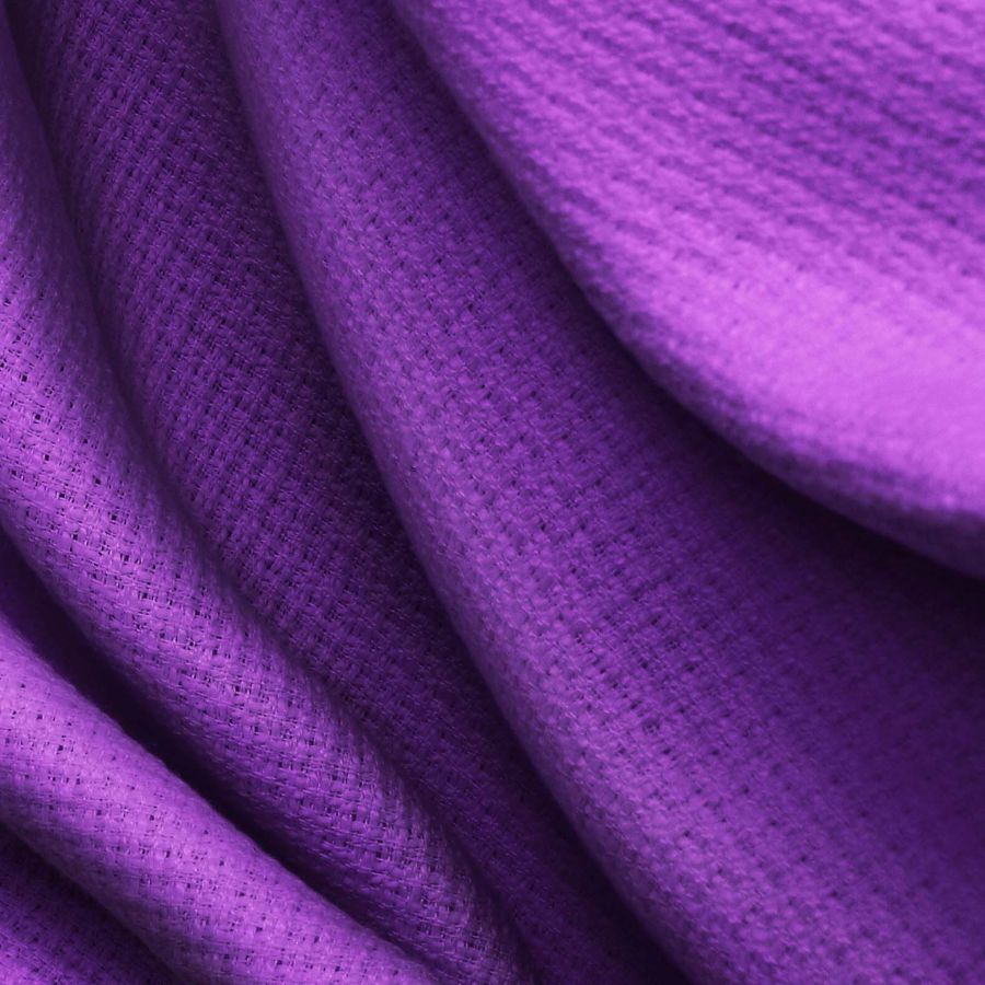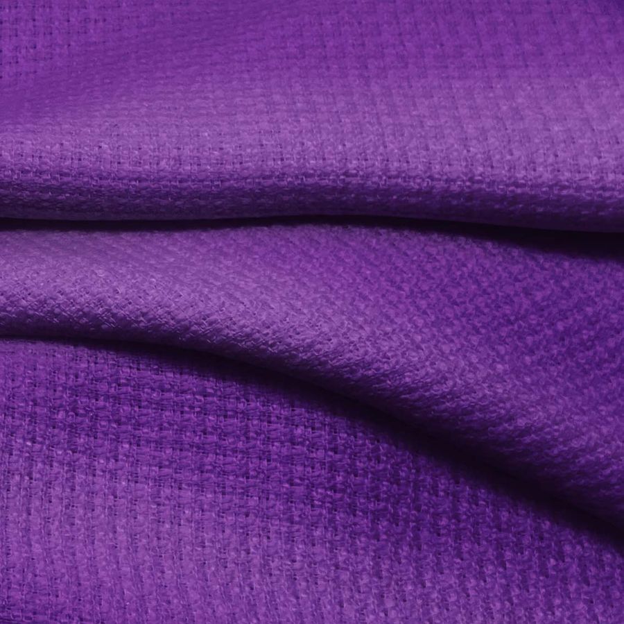 La tela base de este tejido es el Tweed - Chanel, compuesto al 100% de poliéster, con un gramaje de 420 gr/m2 y un ancho de 150 cm. El color liso impreso en este tejido es morado y azul purpureo, con una mezcla CMYK de 78 99 3 0. Este color secundario es símbolo de la creatividad, la ambición y la lealtad. El morado es un color emocionalmente equilibrado que combina bien con tonos pastel, rosados, verdes y grises, mientras que el azul purpureo se asocia con la nobleza y la riqueza y combina bien con colores cálidos y tierra.