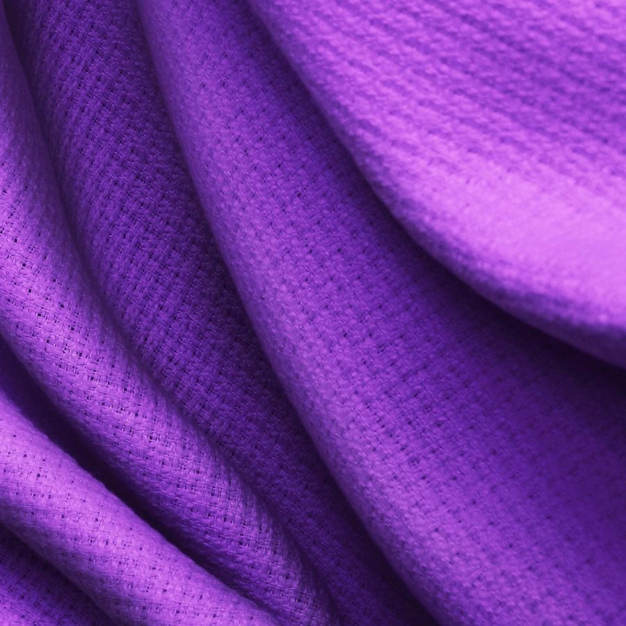 La tela base tiene una textura rígida, lo que la hace especialmente adecuada para prendas exteriores y de alta gama. El color impreso de Morado Uva tiene un tacto agradable y delicado, y se integra perfectamente en la tela base. Entre las características generales del tejido se incluyen su alta calidad, durabilidad y resistencia a la abrasión. En cuanto a las aplicaciones y usos, la tela es adecuada para chaquetas y blazers, abrigos, faldas y vestidos, cazadoras y chalecos, cojines de salón, dormitorio y cocina, así como accesorios como pajaritas y gorras.