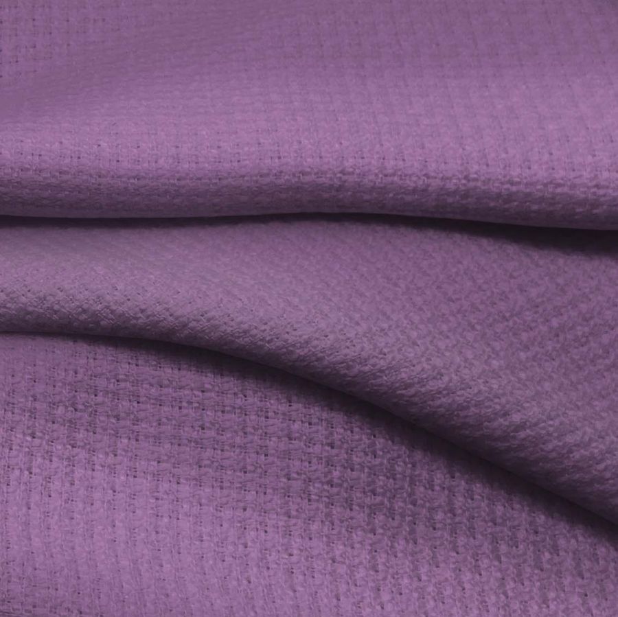 Esta tela base de Tweed - Chanel, con una composición de 100% poliéster y un gramaje de 420 gr/m2, presenta un color liso impreso en tonalidad Morado Violeta Chino, con una tinta cyan de 54, magenta de 66, yellow de 24 y black de 7, cuyo CMYK es de 54 66 24 7. Este color secundario evoca a la creatividad, la sabiduría y la elegancia, a su vez que simboliza la creatividad, la moda y la innovación. Es un color que combina perfectamente con tonos grises, negros, azules oscuros y verdes oliva, lo que lo hace ideal para piezas de ropa y accesorios para cualquier ocasión. Es importante destacar que este tejido está impreso con el color liso a una sola cara por impresión digital textil.