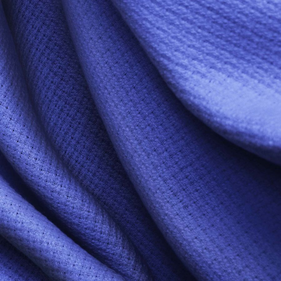 La base de esta tela es el Tweed - Chanel, un tejido rígido de 420 gr/m2 y 100% poliéster con un ancho de 150 cm. El color liso impreso en Morado-Violeta de Cobalto se logra con el CMYK 95 84 9 1, que se asemeja a la combinación de los colores del cielo al anochecer. El color secundario se asocia con la intuición, la creatividad y la sensibilidad, y armoniza con tonalidades grises, nudes y otros tonos de violeta y púrpura.