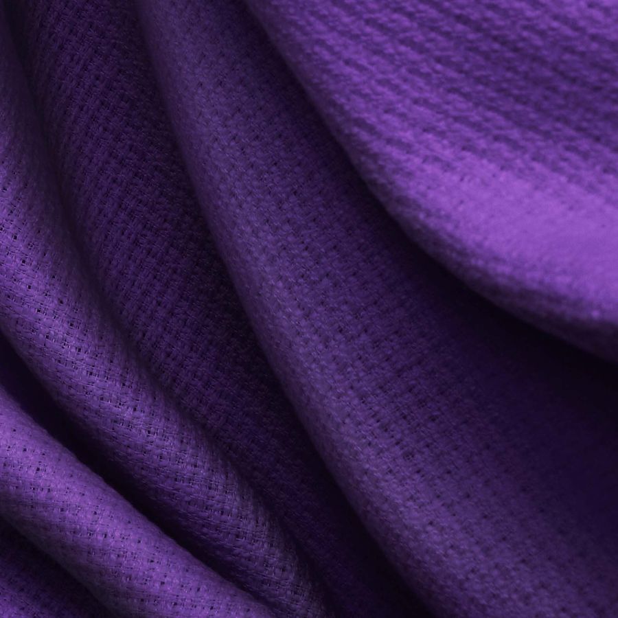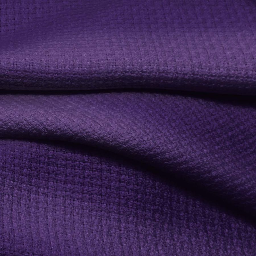 La tela base es el Tweed - Chanel, con una composición del 100% de poliéster y un gramaje de 420 gr/m2, con un ancho de tela de 150 cm. Su color liso impreso es de un Morado/Violeta Ruso, que se logra a través de la combinación de las tintas cyan, magenta, yellow y black cuyo CMYK es de 94 100 34 36. El color secundario es un tono oscuro pero vibrante, que simboliza la elegancia y la sofisticación. Este color es ideal para complementar una variedad de tonos de grises, desde el más claro hasta el más oscuro, así como el rosa palo y el beige claro. Es importante destacar que este tejido está impreso con el color liso a una sola cara por impresión digital textil, lo que permite una precisión milimétrica en el estampado.
