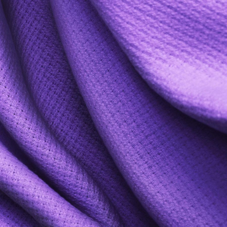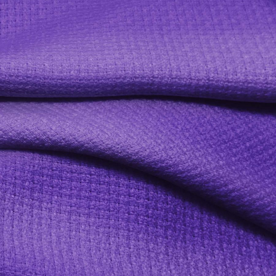 La tela base de esta tela es un tweed de poliéster con un gramaje de 420 g/m2 y un ancho de 150 cm. Su color liso impreso es de un tono morado endrino con un CMYK de 76 81 0 0. Este color transmite elegancia y sofisticación, y combina muy bien con tonos grises, negros y blancos.