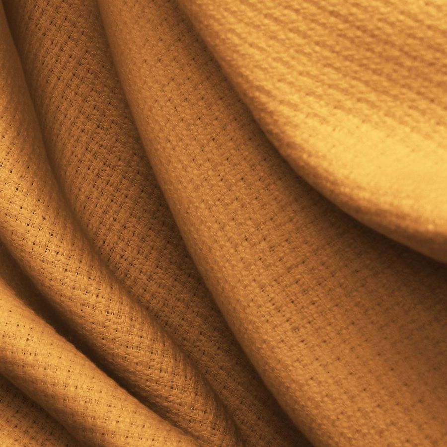 La tela base es Tweed - Chanel, un tejido de tipo tweed con una composición de 100% poliéster, con un gramaje de 420 gr/m2 y un ancho de 150 cm. El color liso impreso es naranja caléndula, con un CMYK de 8 55 80 1, impreso a una sola cara por impresión digital textil. El color naranja simboliza la creatividad, la vitalidad y la energía, y técnicamente, es un color cálido que se asocia con el sol y el calor. El naranja caléndula combina bien con grises, negros, marrones y verdes oscuros.
