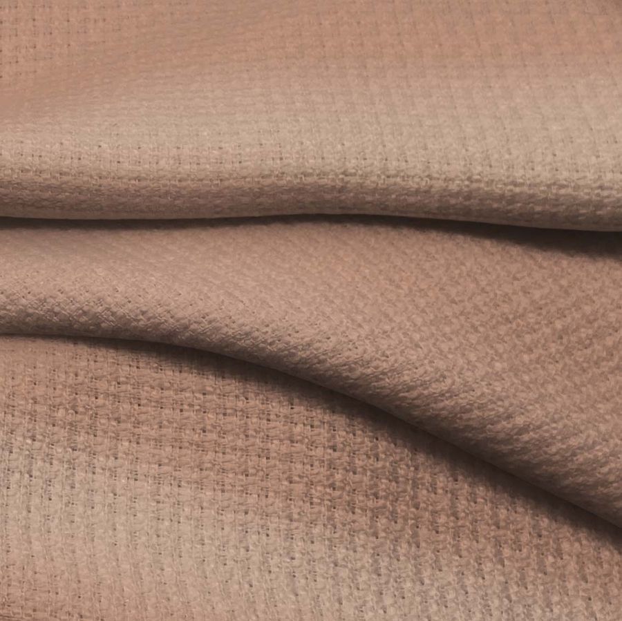 La tela base es de tipo Tweed Chanel, compuesta por 100% poliéster con un gramaje de 420 gr/m2 y un ancho de 150 cm. El color liso impreso es naranja centavo de cobre, con una combinación de tinta Cyan 23, Magenta 44, Yellow 48 y Black 12 de CMYK. Este color tiene una connotación cálida y alegre, transmitiendo energía y vitalidad. El color se complementa perfectamente con tonos más terrosos y naturales como el marrón, verde o beige, como también se puede combinar con colores más fríos como el azul o el gris.