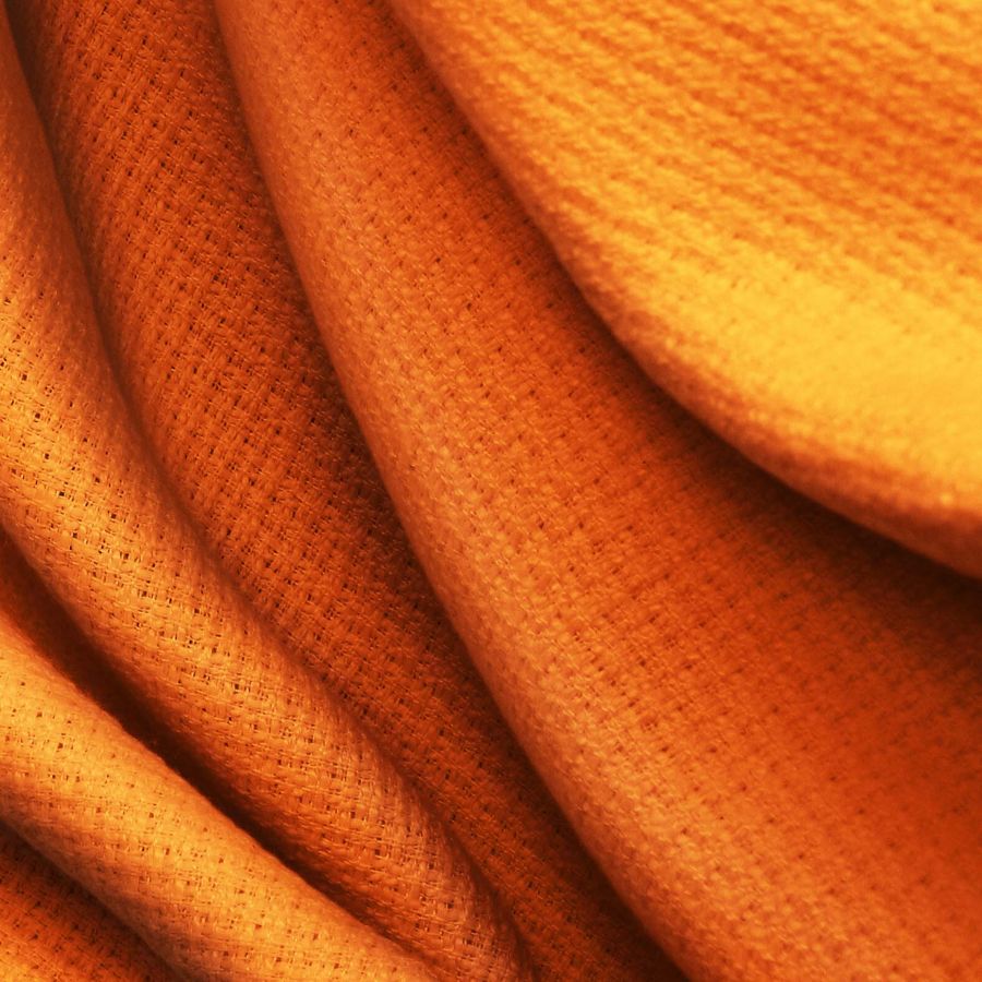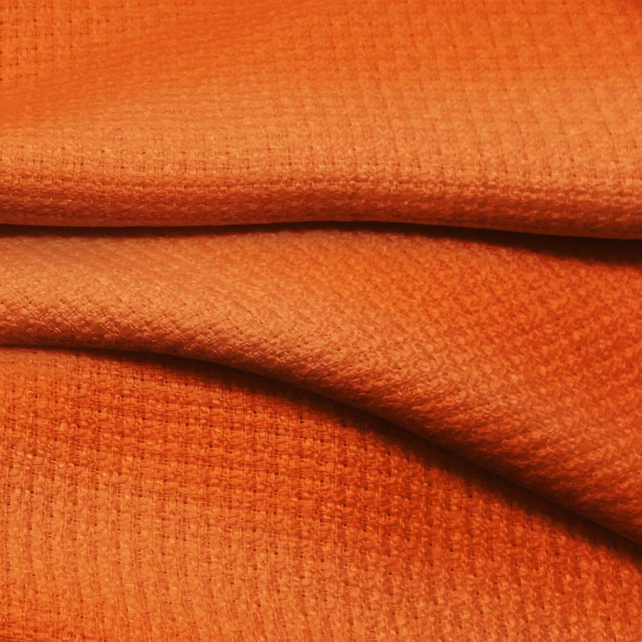 El Tweed - Chanel es una tela con textura rígida compuesta por 100% poliéster, con un gramaje de 420 gr/m2 y un ancho de 150 cm. El color liso impreso en esta tela es un naranja coquelicot, el cual se logra mediante la combinación de tintas cyan, magenta y yellow con un CMYK de 1 78 100 0. Este tono evoca energía, pasión y entusiasmo, y se complementa bien con otros colores como el marrón, beige y blanco. Cabe mencionar que la tela está impresa con el color liso a una sola cara por impresión digital textil, lo cual permite una definición e intensidad de color precisa.