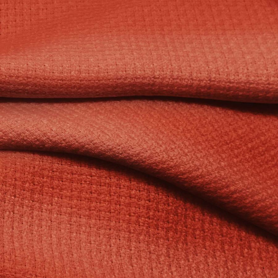 La tela base de este tejido es el Tweed - Chanel, de composición 100% poliéster, con un gramaje de 420 gr/m2 y un ancho de 150 cm. El color liso impreso es Naranja, Ladrillo Refractario y tiene un CMYK de 22 86 91 13. Este color es simbólicamente cálido y acogedor, pero también puede representar la fuerza y el vigor. En términos técnicos, su combinación entre el naranja y el ladrillo le da un aspecto profundo y elegante, lo que lo hace ideal para prendas de vestir de otoño, pero también ampliamente utilizado para la decoración y tapicería.