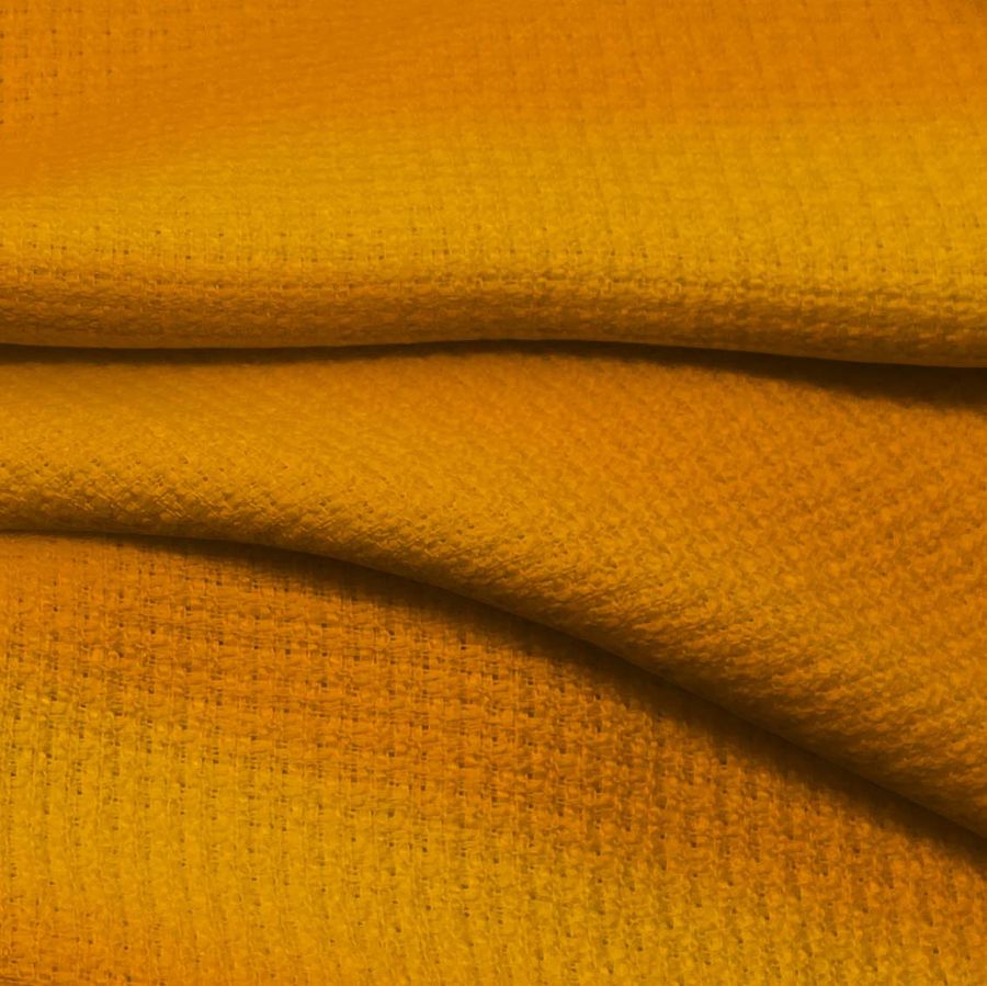 En definitiva, el Tweed - Chanel impreso en naranja español es un tejido polivalente, resistente y cálido que puede utilizarse en una gran variedad de prendas, como chaquetas, blazers y abrigos, así como en decoración de hogar, como cojines y cortinas. Gracias a la tecnología de impresión sublimación, el color impreso es duradero y resistente al lavado y el uso.