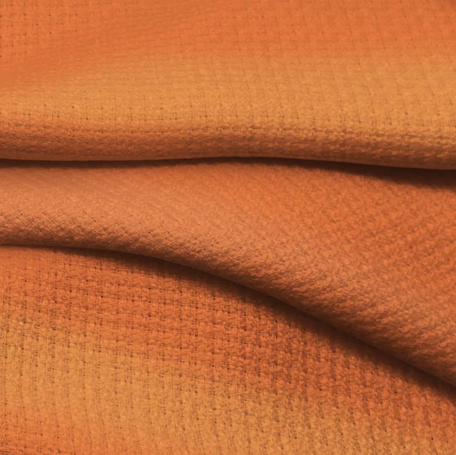 La tela base de este tejido es el Tweed Chanel, compuesta por 100% poliéster y con un gramaje de 420 gr/m2. El color liso impreso es un naranja de Portland con un CMYK de 0 65 78 0. En cuanto al color, se trata de un tono cálido y vibrante que simboliza la alegría y el optimismo. Combina bien con otros tonos naranjas, amarillos y rojos, así como con azules y verdes que crean un contraste interesante.