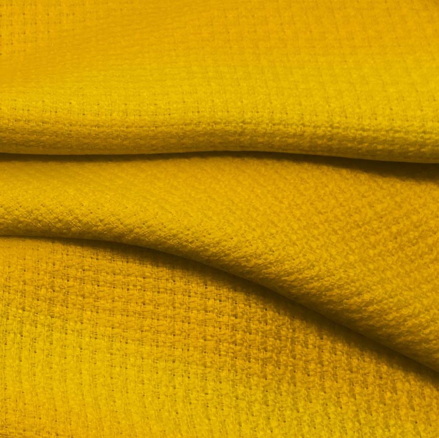 La tela base Tweed - Chanel es un tejido rígido de composición 100% poliéster, con un gramaje de 420 gr/m2 y un ancho de 150 cm. El color liso impreso en la tela presenta un tono naranja ryb con un CMYK de 0 39 98 0. Este color secundario representa una mezcla vibrante y enérgica entre el amarillo y el rojo, reflejando vitalidad y creatividad. Combina perfectamente con tonos neutros como el blanco, negro y gris, así como con tonalidades más cálidas como el marrón o el dorado.