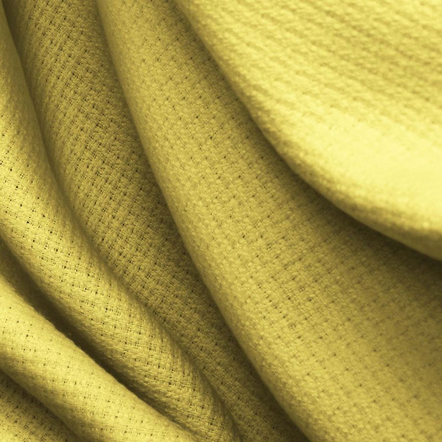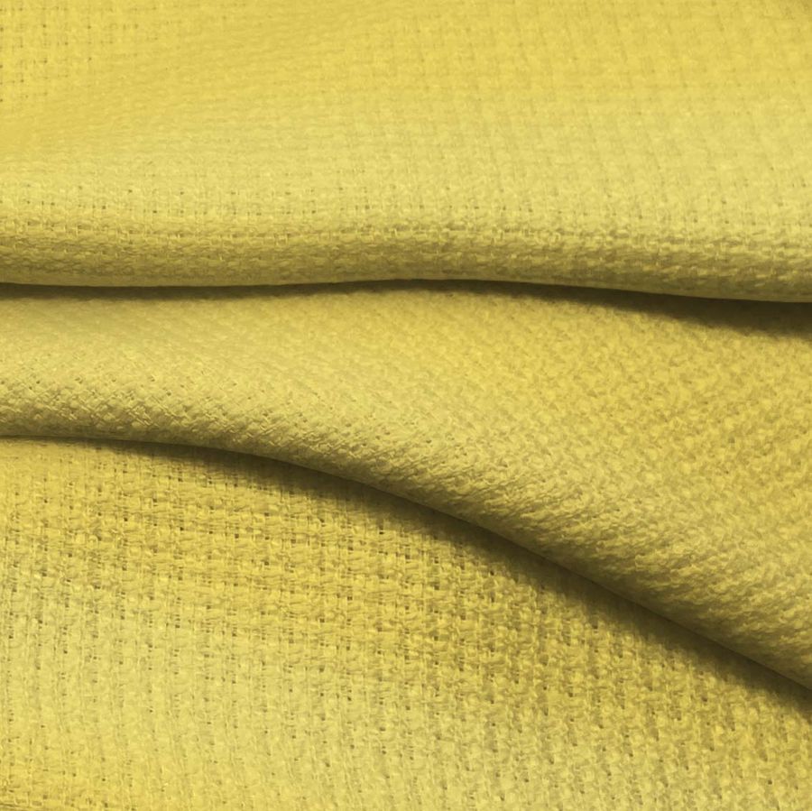 La tela base Tweed - Chanel es un tejido de tweed 100% poliéster con un gramaje de 420 gr/m2 y un ancho de 150 cm. El color liso impreso en esta tela es amarillo de China, con una tinta cyan de 4, magenta de 12, amarillo de 72 y negro de 0, resultando en un CMYK de 4 12 72 0. La tonalidad de amarillo es brillante y llamativa, transmitiendo energía y optimismo. Este color evoca el sol y la luz, la felicidad y la alegría. Combina muy bien con otros colores cálidos como el naranja y el rojo, y también con colores neutros como el gris y el negro.