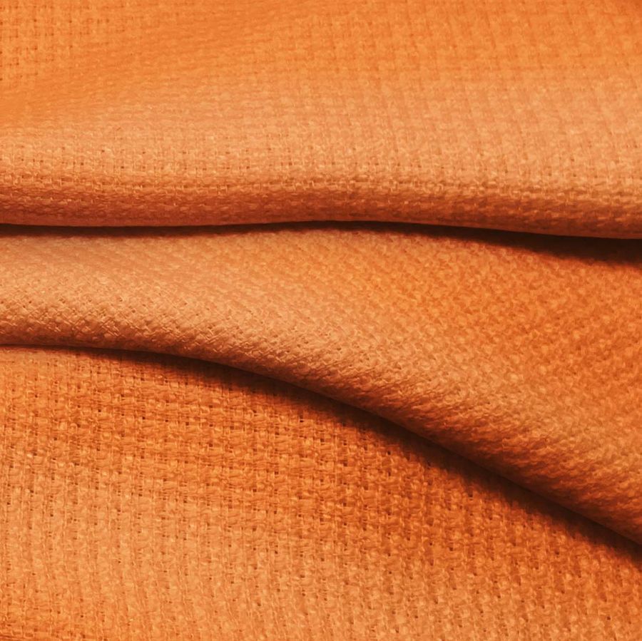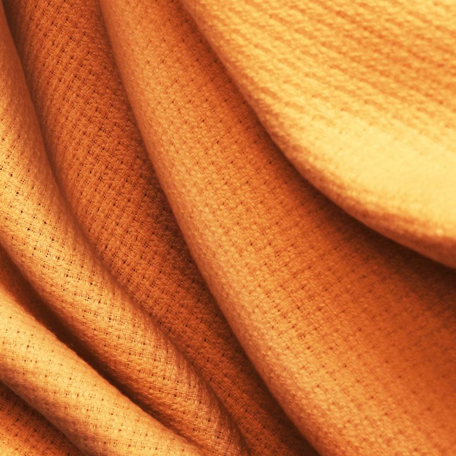 La tela base, Tweed Chanel de 100% poliéster con un gramaje de 420 gr/m2 y un ancho de 150 cm, tiene un color liso impreso en amarillo indio con un valor CMYK de 0 65 82 0. Este color transmite energía y vitalidad al textil. Simbólicamente, el amarillo es el color del sol y representa la alegría y el optimismo. Se combina bien con tonos azules y verdes para crear contrastes relajantes, así como con rosas y rojos para obtener una sensación cálida.