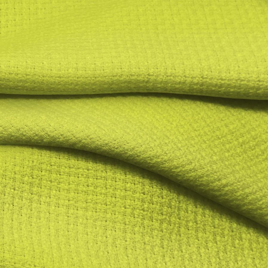 La tela base es un Tweed - Chanel de 420 gr/m2 y ancho de 150 cm, 100% poliéster. El color liso impreso es Amarillo, Limón con una combinación de tintas CMYK de 23 0 80 0. Este color simboliza la claridad, la felicidad y el optimismo, siendo ideal para crear prendas y accesorios que transmitan estas sensaciones. El Amarillo, Limón se puede combinar con blanco, gris, negro y tonos pastel para crear conjuntos elegantes y frescos.