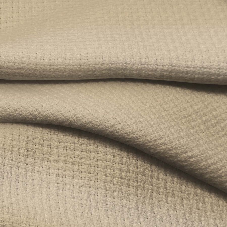 La tela base es el Tweed - Chanel, un tejido pesado de poliéster con un gramaje de 420 gr/m2 y un ancho de 150 cm. Su color liso es amarillo nanquín, con un perfil CMYK de 19 26 43 4. Este amarillo nanquín es un tono dorado oscuro y terroso que se asocia con la estabilidad y la serenidad. Combina perfectamente con colores neutros como el gris y el negro, y también con tonos más vivos como el rosa, el turquesa y el verde.
