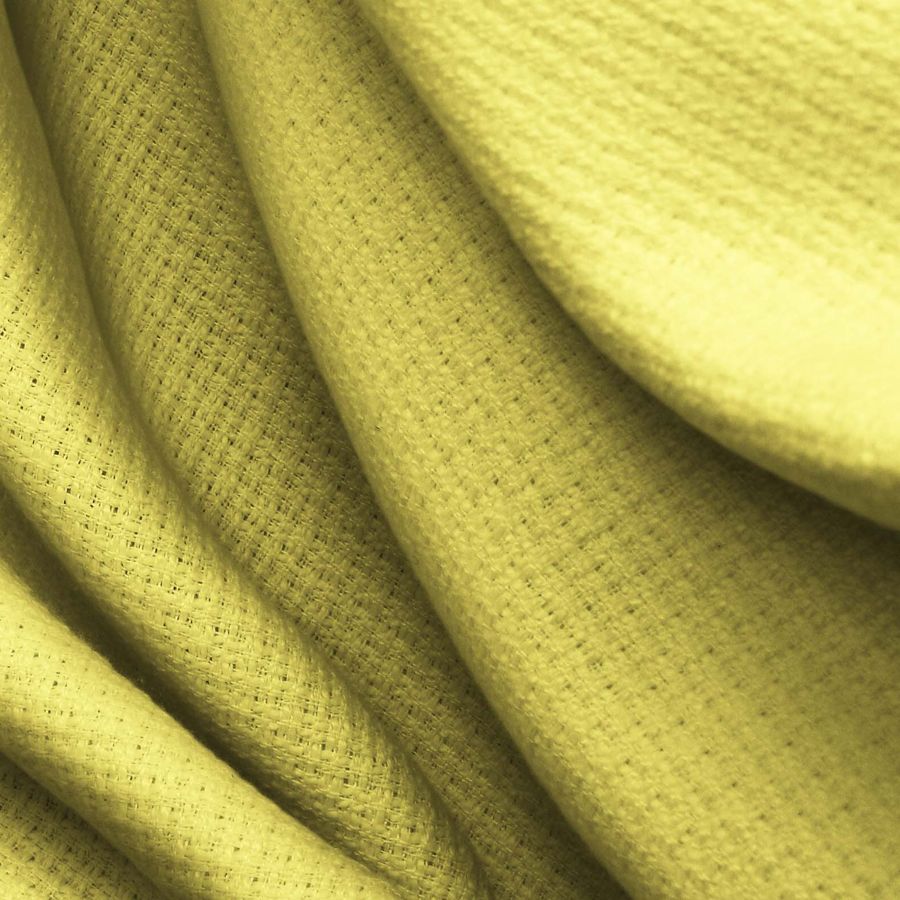 El tweed Chanel es una tela de poliéster con una composición del 100%, un gramaje de 420 gr/m2 y un ancho de 150 cm. El color liso impreso es un amarillo piña con un CMYK de 3 3 71 0. Este color ofrece un toque cítrico y vibrante que aporta frescura y vitalidad a las prendas. Es una tonalidad versátil que combina muy bien con grises, blancos, negros, verdes y azules.