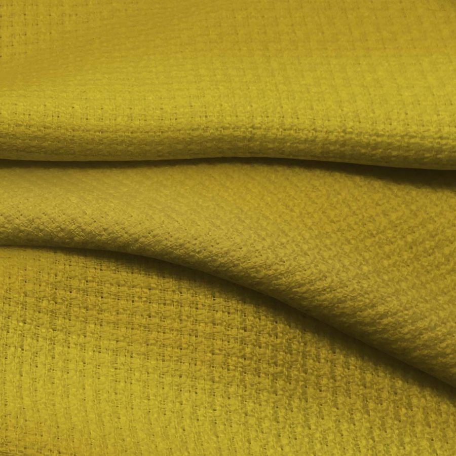 La tela base de este producto es Tweed - Chanel, con una composición del 100% de poliéster y un gramaje de 420 gr/m2. Su ancho es de 150cm y su cuidado requiere temperaturas máximas de lavado de 30ºC, admitiendo limpieza en seco a excepción del tricloroetileno. No se puede blanquear ni secar en secadora, y se plancha a temperatura fría. Este tejido es ideal para crear productos de moda y textiles para hogar, tales como chaquetas, abrigos, faldas, cojines y pajaritas. También puede ser usado en deportes como en chalecos. Se puede utilizar tanto en mujeres, hombres y niños. Este tejido es atemporal y apto para la temporada de Otoño/Invierno 2021. El color liso impreso es de un tono amarillo sahara con un CMYK de 26 32 93 12, hecho mediante sublimación. La textura de este tejido es rígida al tacto, y el color amarillo sahara produce una sensación de armonía y tranquilidad. Los colores que mejor combinan son los tonos neutros como grises, blancos y tonos naturales como beiges. Es importante tener en cuenta que este tejido está impreso con el color liso a una sola cara por impresión digital textil, y que no es un tejido tintado sino impreso. En la fabricación de este tejido se utiliza la tecnología de impresión digital textil mediante sublimación, que permite que la tinta se transfiera del papel a la tela mediante calor y presión, consiguiendo una gran calidad y fidelidad en la reproducción de los colores. Es un tejido duradero y resistente, ideal para proyectos creativos y con personalidad.
